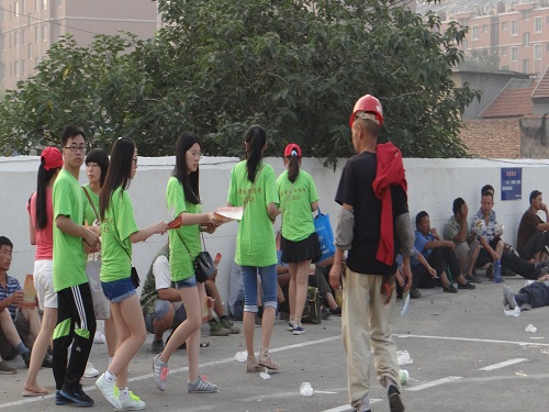 该实践队进入市场后就吸引了众多劳动者的注意力,成员们仔细耐心的给他们讲解法律援助机构设立目的、援助范围、申请条件、申请方法以及政策规定等专业知识,并运用自己所学的法学知识为前来咨询的劳动者排忧解难,为他们的维权提供了正确的道路。