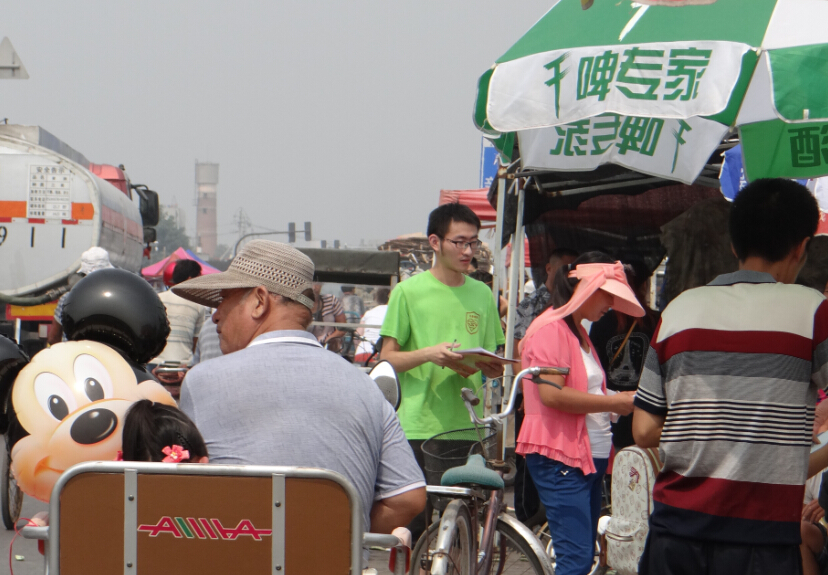 今天淄博全市依然高温,实践队成员在经过两个小时的漫长路途之后,终于到达目的地——齐都镇。齐都是古齐国的都城,有着悠久的文化历史,深厚的文化底蕴。实践队成员到达目的地之后,怀着高涨的热情,投入到实践活动之中。队员利用印有法律知识的单页和扇子深入到正在赶集的人群中,一边进行普法宣传一边发放法律援助知识的单页。炎炎烈日下,实践队成员们克服高温环境,为每一个经过法律援助宣传点的行人讲解法律援助知识,同时邀请他们参与到社会调查中去。齐都镇的乡亲们十分热情,积极配合着成员们的工作。实践队的成员们都挥洒着自己的汗水,为了能把法律知识传达到基层而奉献着自己的力量。