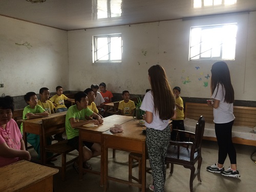 临沭县残障儿童康复中心的孩子们与同龄孩子智力有很大差异。记忆力也比较差。他们从来没有学过英语,仅仅是26个字母中的前七个,他们也不能记全。实践队员耐心讲解,带着孩子们一遍一遍练习。语文课上,教授给孩子们三字经等传统优秀文化,但是由于智障儿童智力方面问题,在背下之后仍不知其意,因此,实践队员便利用讲故事等方式使智障孩子了解三字经含义。