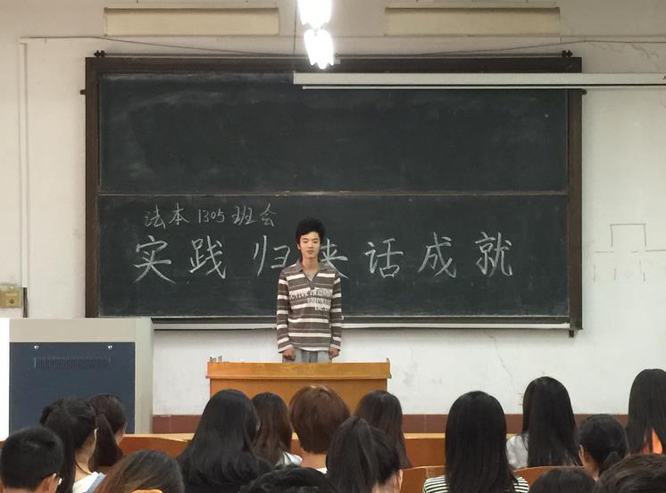 9月9日上午十点,由伟德victor1946网站法本1305班主持举行的班会——“实践归来话成就”活动顺利展开,参与活动的有法本1305班全体同学和班级辅导员侯振中老师。