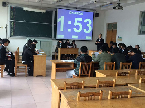 群雄舌战展雄风,争锋相对辩天下,此次比赛围绕知识积累与知识创新哪个更重要,辩论双方展开激烈的辩论。比赛公四场,公分为开篇立论、驳立论、攻辩、攻辩小结、自由辩、第三方盘问、总结陈词七个个环节。首先,在正反双方简洁明了、慷慨激昂的自我介绍中进入到开篇立论环节,开篇立论环节由一辩打响第一枪,她们对知识、积累、创新等关键词开宗明义,表达了自己的立场与观点。在随后的攻辩环节中,正反双方更是针锋相对,步步紧逼,比赛现场气氛迅速升温的态势。接下来,进入紧张的自由辩环节,双方辩手用精辟而又不失幽默的言辞,就“知识积累与知识创新哪个更重要”进行了一场激烈的论战。随后,短暂而精彩的第三方盘问环节后,双方四辩的攻辩小结为此次辩论赛锦上添花。最后,由各位评委就此次比赛进行点评。