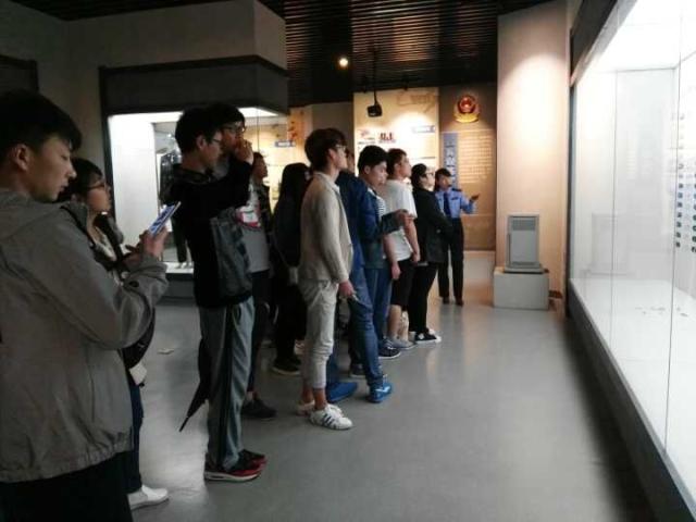 参观团队于乘坐公交车下午2:30到达淄博市公安局,首先由淄博市公安局工作人员对参观学习团队表示热烈欢迎,然后带领全体人员来到位于四楼的淄博市警察博物馆,在工作人员的引导和解说下,同学们参观了历史沿革厅,装备厅,科技厅,交通厅,荣誉厅等展览室,对我国以及淄博市公安的历史发展、警察种类、工作内容、英模事迹有了深刻了解,也见识到毒品、假币、假酒等大量公安干警缴获的危害人民生命财产安全的赃物。参观过程中,同学们与工作人员积极展开互动,针对一些感兴趣的话题提出疑问,积极讨论,工作人员都耐心解答。尤其是在馆内的荣誉厅,同学们参观了多位党和国家领导人给淄博公安题写的书法作品,学习了18位公安战线英模的英雄事迹,英雄们牺牲自己保护人民生命财产安全的事迹感动和震撼了在场的每一位同学。最后,同学们在留言板上留下自己的感想,全体参观人员在博物馆门口合影留念。