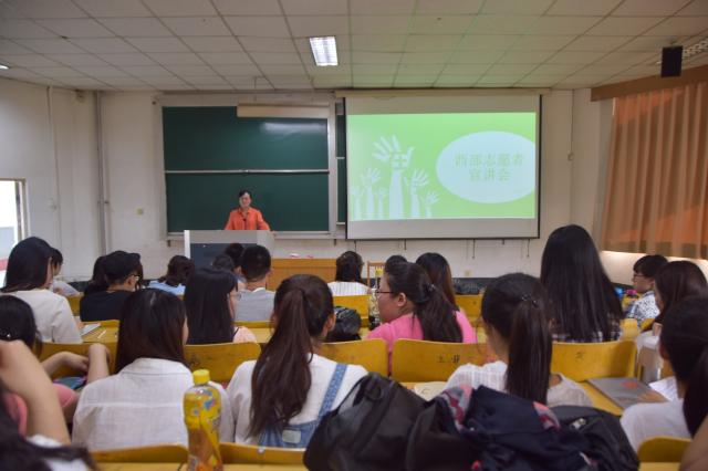 宣讲会伊始,李红玲老师对老员工志愿服务西部计划项目以及取得的成果做了详细讲解,她讲到,“老员工志愿服务西部计划是根据国务院常务会议精神,团中央与教育部、财政部、人力资源和社会保障部联合实施的一项计划,截止目前,全国项目累计选派了16万多名高校毕业生到中、西部22个省(区、市)及新疆生产建设兵团2100多个县开展志愿服务,累计派出近万名研究生志愿者,各项工作持续、健康发展。”随后,她对团中央、其他部委的发文以及相关的政策做了简单介绍,使同学们对这项志愿服务的计划有了基本的了解。