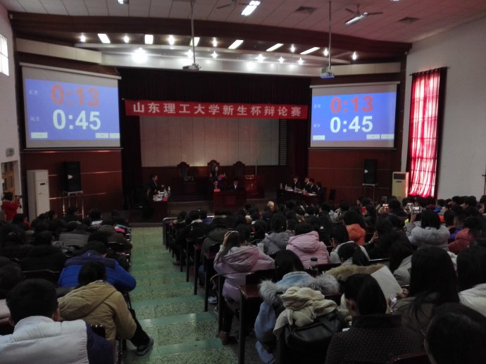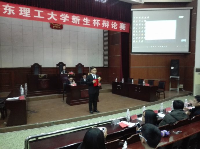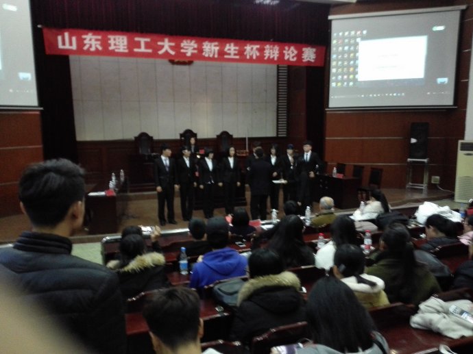赛场之上,各位辩手信心十足,就拿得起,放得下谁更难的问题展开辩论。首先双方一辩沉稳有力,阐述各自观点,当仁不让,比赛现场逐渐升温。接下来,攻辩自由辩环节可谓进入白热化阶段。场上,二三辩的辩手们集中注意,认真听取对方观点,不放过任何一个漏洞。针锋相对,驳回提问再驳回,强而有力又不失稳重,攻守配合得当,精彩绝伦;场下,评委以及观众们一边屏气凝神,生怕错过精彩之处,又一边忍不住的想拍掌叫好。室内的热情与室外的寒风形成鲜明的对比,寒风拍打着门窗,似乎也想闯进来一观这激情四射的辩论呢。
