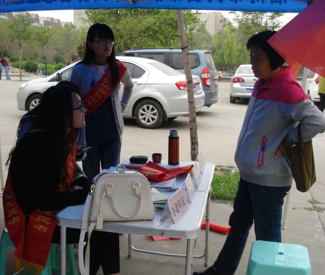 虽然二号这天早晨刮起了北风,天气比较冷,但同学们还是一大早的就在南门集合一起出发去了九级村,尽管风很大,气温也有点低,可是这一点也没能够削减同学们的热情。阳光社工协会的同学们一到目的地就积极主动的开始向负责人了解自己要做的任务,一起合作,快速的摆好桌椅,整理好东西就开始为老人们做一些办理老年证,黄手环,法律咨询以及心理抚慰等志愿服务。他们还协助淄博老年人扶助协会为参加唱响中国梦2017年全国社区网络春晚海选活动的这些精神头十足、表演也十分精彩的老人们送上了礼品。