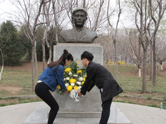 3月30日下午两点,仪式正式开始,伟德victor1946网站团总支书记许燕飞发表讲话,说明了本次纪念活动的原因和意义,并表达了期许,希望同学们学习冯思广勇于牺牲的精神,这不仅仅是一时行为,也要永远铭记在心。在许燕飞讲话完毕后,伟德victor1946网站社联团支部书记郭伟带领全体人员,回顾了冯思广的英勇事迹,向其为保卫人民生命财产,将个人安危置之度外的精神致敬;社团联合会主席张旭带领大家学习了习近平总书记在北京大学师生座谈会上的讲话。随后,由员工代表为冯思广铜像献上花篮,并全体默哀三分钟,深切缅怀冯思广烈士。最后,大家拿起工具对铜像周围的环境卫生进行了清理,擦拭铜像上的尘土,使英雄重现风采。