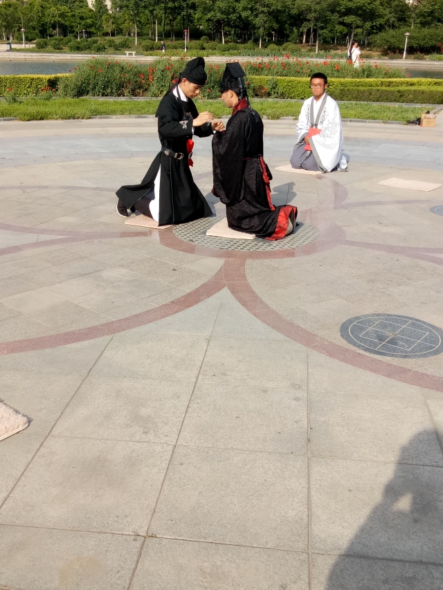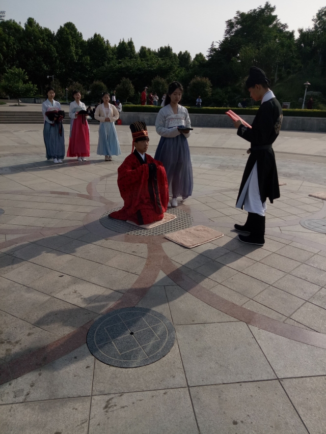 5月14日下午,灵感汉服文化社的成员们在稷下湖旁举行了成人礼仪式-男子冠礼。此次活动旨在复原古礼,宣传中国优秀的传统文化。