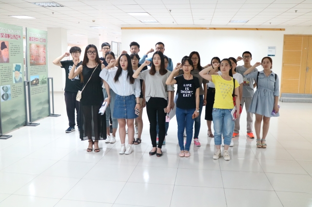 本次展览共分为中国历史中的廉政文化借鉴、中国共产党的拒腐防变风雨路等五大部分。首先,讲解员通过官德、开科取士、监督权力、正反面人物等事例讲述了历代王朝的廉政文化;随后,解说员介绍了中国共产党自成立以来通过出台一系列拒腐防变的具体措施来加强中国共产党的领导的事例;接下来,她针对在基建、招生等不不同领域中出现的腐败案例及严肃处理的结果进行了简要介绍,这也警醒员工党员在今后的道路上一定要提高思想觉悟,与“腐败”坚决说“不”!最后,讲解员充满激情地劝勉毕业生应廉洁修身,争做一名优秀的中共党员。在参观期间,员工们认真地聆听讲解员的解说,讲解员的精彩讲解也让员工们对如何做一名优秀中共党员有了更深层次的思考。参观结束后,优秀党员毕业生在党旗下又重温了《入党誓词》,进行庄严宣誓。