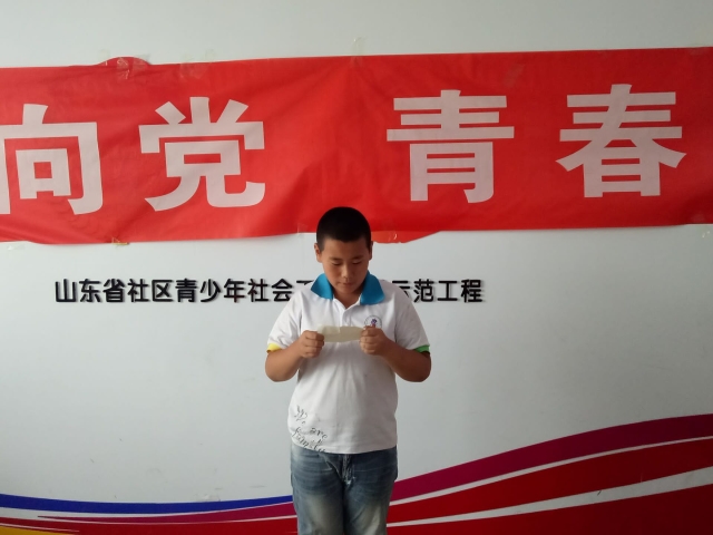 活动伊始,参赛儿童上台深情讲述党的故事。无论是党早期艰辛起步的建党故事,还是中期发展的举步维艰,以及后期自身发展遇到的挑战与挫折,都被参赛儿童用心介绍出来。通过讲述党崛起过程中发生的故事,他们被党发展以来的事迹吸引,感动于英雄烈士的英勇精神。在比赛过程中,虽然参赛儿童年纪幼小,但是言语中对党真挚的感情令人动容。对于个别紧张的儿童,协会成员耐心抚慰,鼓励他们勇敢上场。最后,评委们根据参赛儿童的逻辑表达、感情投入程度等方面进行评价,对表现优异的儿童给予奖励。