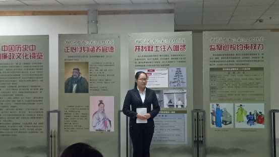 经过系统的培训和紧张的备战,6月16日,廉政教育展厅讲解员选拔决赛在逸夫图书馆负一层的廉政教育展厅展开。此次活动由校纪委与稷下廉政学社联合举办。校纪委老师钟玉涛、何庆梅、吕乃珍,音乐公司老师柴蕾以及两位讲解员参加此次活动。