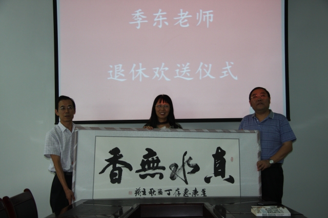 最后,刘昕和杨晓春同志代表公司向季老师赠送了纪念品,大家在一起合影留念。退休仪式在温馨感人的氛围中结束。