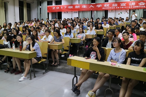 宣讲会伊始,主讲人向新生说明了维权的重要性,指出权益离大家并不遥远,而是跟大家的日常生活息息相关,并且从衣食住行以及人身安全、财产安全等方面详细介绍了日常生活中的相关权益,为新生提供了正确维权的方法和途径。