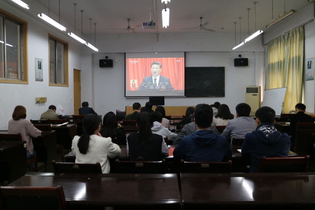 观看直播后,党总支书记刘昕表示,作为一名教育工作者,看到习近平总书记所做的十九大报告把“优先发展教育事业”作为提高保障和把改善民生水平的第一条,说明党中央非常重视教育事业,倍感欣慰,深受鼓舞。我们应牢记总书记嘱托,认真学习贯彻十九大精神,办好人民满意的教育,要全面贯彻党的教育方针,加强党对高校的全面领导,认真落实立德树人根本任务,培养德智体美全面发展的社会主义建设者和接班人。