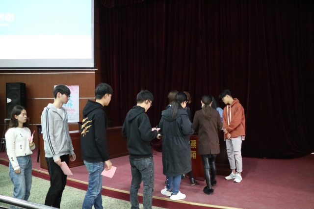 活动伊始,工作人员向员工代表分别介绍了各位候选老师的基本信息,主要包括个人简介、教学特色以及员工评价;介绍完毕后,现场工作人员将投票名单发放到每位员工代表的手中,引导同学们本着“公平、公正”的原则对自己最喜爱的老师进行投票;投票完毕后,员工代表在工作人员的监督下有序地将自己的投票放入票箱中。