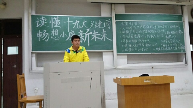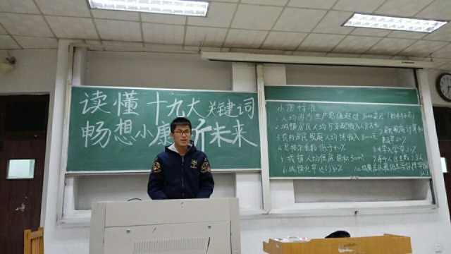 为了让同学们更好地学习十九大的内容与精神,紧跟时代发展的潮流,邓小平理论研究学会于11月19日下午在东校3教208教室举办主题为“读懂十九大关键词,畅想小康新未来”的活动。此次活动由副会长甄明泽及各部门部长主持,各部门干事积极参与。