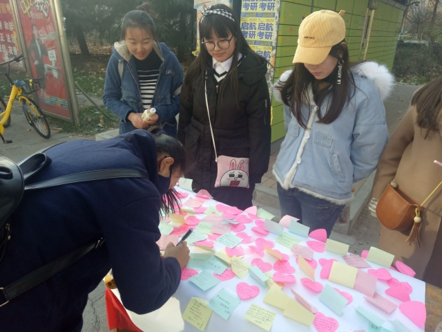为了响应感恩节的到来,引导员工关注美好,鼓励员工向亲近的人表达感谢,11月23日,由阳光社工协会主办的“感恩从‘写’开始活动于在东校区餐厅门口以及西校区二号餐厅门口举行。在阳光社工协会成员的主导下,面向的是公司全体在校师生。