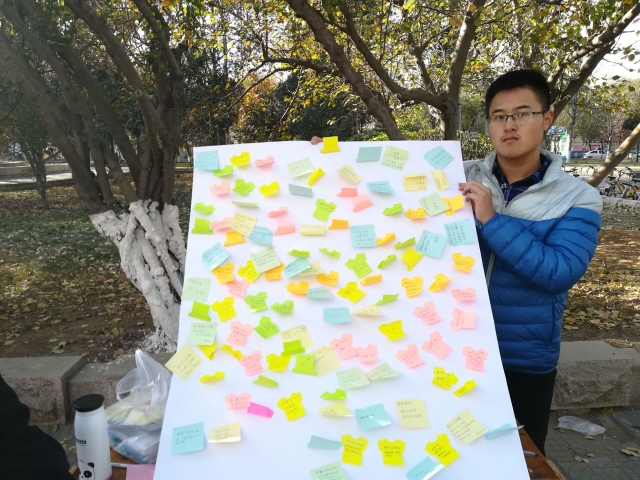活动伊始阳光社工协会为参与活动的师生提供便利贴,让他们在便利贴上写下想对自己感恩的人想说的话。员工们有的对此表示害羞,有的则大方地写下自己想说的话。在了解活动意义后。很多员工主动要求领取便利贴给自己牵挂的人写下寄语。活动过程中每个人都认真、专注、充分表现了对此次活动的热情与积极的关注。活动的最后,由会长王小康带领举行社团例会进行活动总结,鼓励各位会员再接再厉。在热烈的掌声中,活动圆满结束。