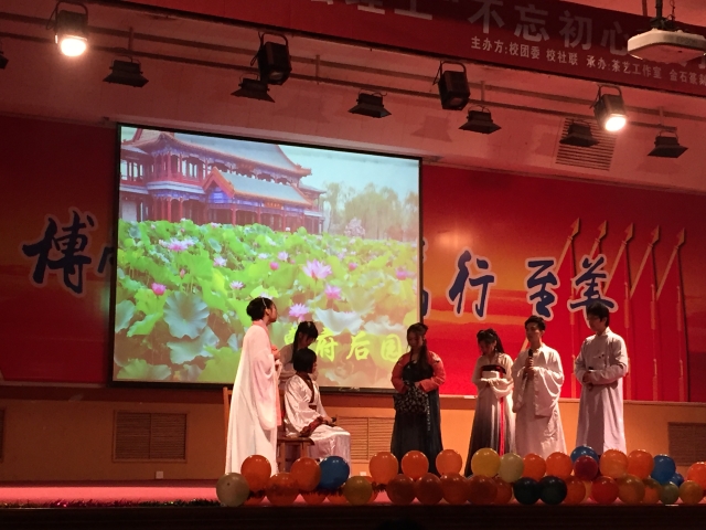 12月2日晚,在三号教学楼三号报告厅举行的第三届传统文化炫理工“不忘初心,发扬国粹”颁奖晚会正式开始。主办方是校团委、校社联,承办方由茶艺工作社、金石篆刻协会、老员工书画爱好者协会、灵感汉服文化社以及老员工陶艺协会组成。此次活动体现了汉民族的文化特征,符合了传统文化炫理工的主题。