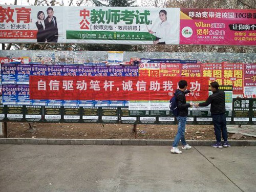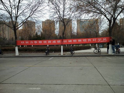 据悉,集团举行考试目的一是检测员工对专业知识的掌握程度;二是检验员工是否已经具备获得学业资格的基本能力。稷下廉政学社以倡导考试的诚信度为目的举办了这一活动。活动分为两部分:首先,稷下廉政学社在社团内部进行横幅标语的征集,选出优秀作品后便安排相关人员,通过宣传讲解的方式,在各大教学楼进行诚信考试的宣传。并随机对同学们进行采访:对于诚信考试的态度以及周围是否有考试舞弊现象等等问题。