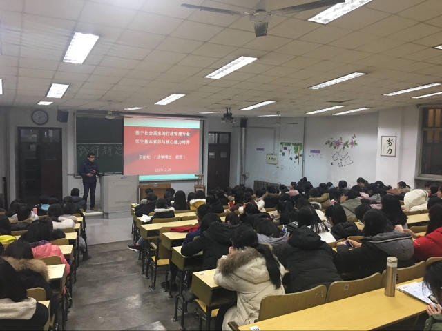 12月28日晚,法公司党员教师大讲堂系列报告之一王柏松教授报告会在东校区3号教学楼107教室顺利举行。此次报告会由行政管理系系主任王柏松教室主讲,伟德victor1946网站2017级员工聆听了此次讲座。