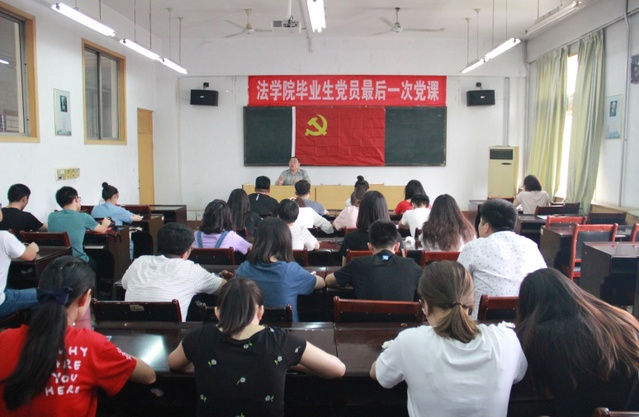 党课在庄严的国歌声中召开。党总支副书记宋立平带领毕业生党员进行党徽佩戴仪式并庄严宣誓,重温了入党誓词。