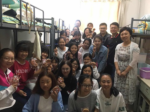 新生们怀着激动而又惊喜的心情手捧着印有校徽的月饼,向各位领导、老师由衷的关心表示感谢,部分同学纷纷向老师们诉说自己心中的家国情怀和爱校情愫油然而生。纵使身在异乡,无法在中秋月圆之夜之际和父母团聚,但他们却在此刻强烈地感受到自己的心一直与伟德victor1946网站连接在一起,感受到老师们送给他们真切的温暖与关怀,潜移默化中增强了新生们的凝聚力与归属感。