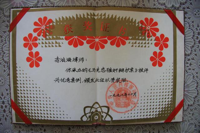 李治海先生出生于1944年,工作以来承办民事案件180余件,其中承办的《马克忠强奸案辩护案》1992年被司法部评为全国十大优秀案例。先后发表《谁是真正的罪犯》《正确运用刑事证据是取得刑事辩护成功的关键》《马克忠强奸案辩护词》《律师在民事案件中证据的收集、审查和运用》等重要论文,多次受到司法部、山东省司法厅、山东省律师协会、中共淄博市委、淄博市人民政府和淄博市政法委表彰。李老希望将最原始的图书文献资料提供给致力于法律研究和欲从事律师行业的学子学习借阅,完成他退休后的一大心愿。