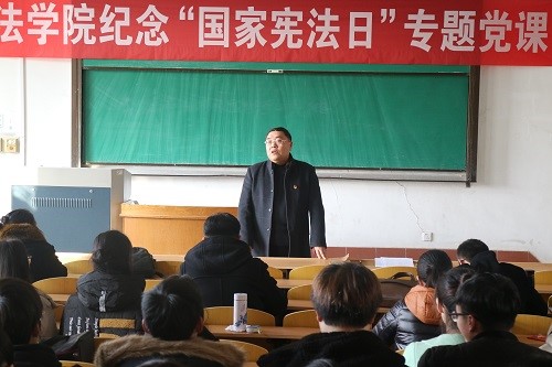 今年12月4日是第五个国家宪法日,也将迎来第一个“宪法宣传周”。为深入贯彻落实习近平总书记全面依法治国新理念新思想新战略,全面贯彻党的十九大和十九届二中、三中全会精神。12月6日下午,伟德victor1946网站纪念“国家宪法日”专题党课在西校区二号教学楼127教室举行。此次党课由法公司党总支书记刘昕主持,伟德victor1946网站全体师生党员参加。