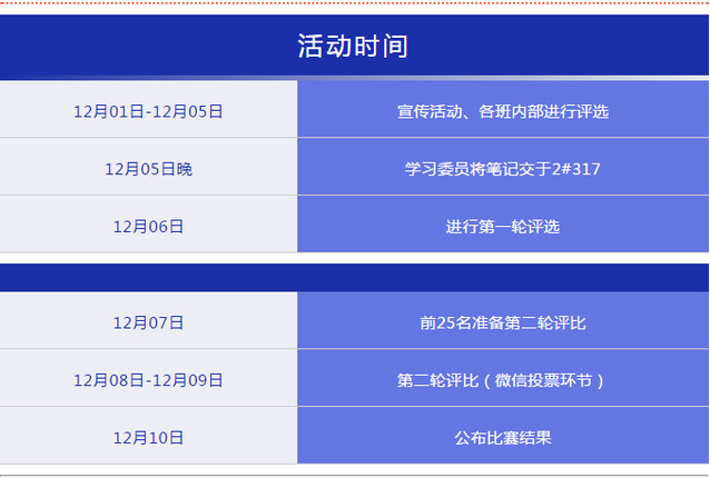2. 15、16级:每位同学自愿参赛,每人可提交1本笔记参评,可以任意选择本学期一门学科笔记。各班学习委员统计每班参赛同学的信息(班级、姓名、学号、联系方式),制成电子表格,发给学习部工作人员,并将笔记收齐后于上交给学习部。