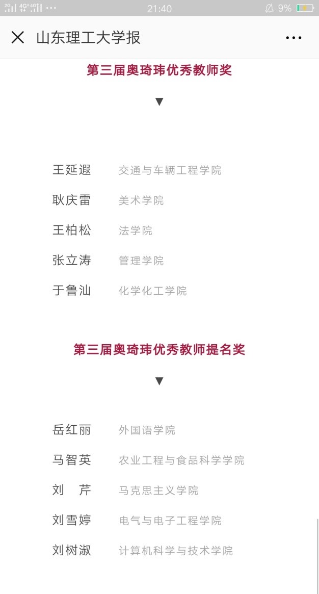 奥琦玮优秀教师奖是为激励教师教书育人的使命感和责任感,奖励专心于基础教学、教学质量优秀、积极开展教学研究与改革、取得一定成绩的教师的教师所设立的奖项。
