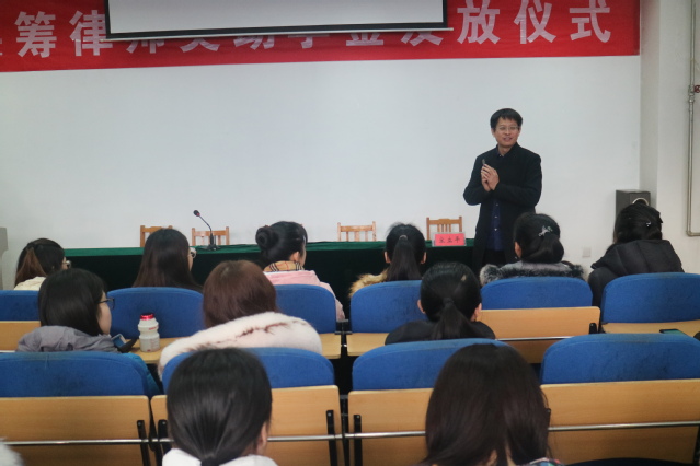 许燕飞宣读了《关于表彰2018年度“洪筹律师”奖学助学金获奖人员的通报》。
