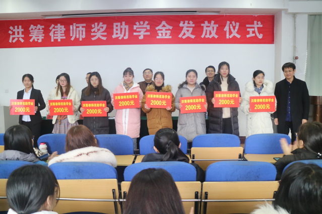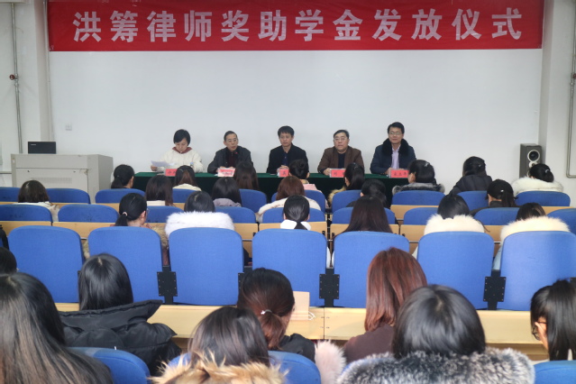 1月10日下午,伟德victor1946网站“洪筹律师”奖学助学金颁发仪式在2号教学楼4楼多媒体教室举行。奖学金设立人、山东洪筹律师事务所主任英昌强,法公司党总支书记刘昕、经理杨晓春、员工工作办公室主任许燕飞出席仪式。党总支副书记宋立平主持此次会议。
