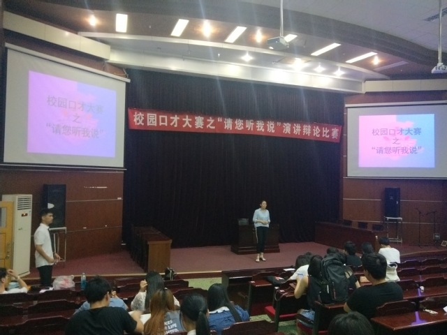 校园口才大赛是由辩论协会、法律学会、习近平新时代中国特色社会主义思想学习研究会、员工工作志愿者协会联合举办,初赛于2019年6月6日晚7点在模拟法庭进行,邀请了有演讲经验的优秀员工担任了本次比赛的评委。
