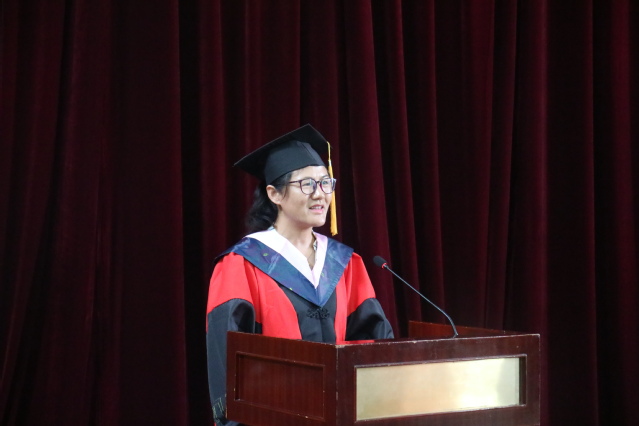 教师代表牛喜霞为毕业生送上临别寄语,对同学们的未来寄予了美好的期盼与祝福,希望同学们构建理想、挑战人生,勤于思考、敢于质疑,走向社会,不忘初心。愿每位同学为理想而奋斗,追寻属于自己的诗和远方。
