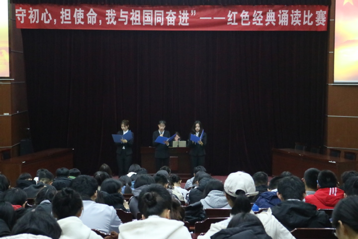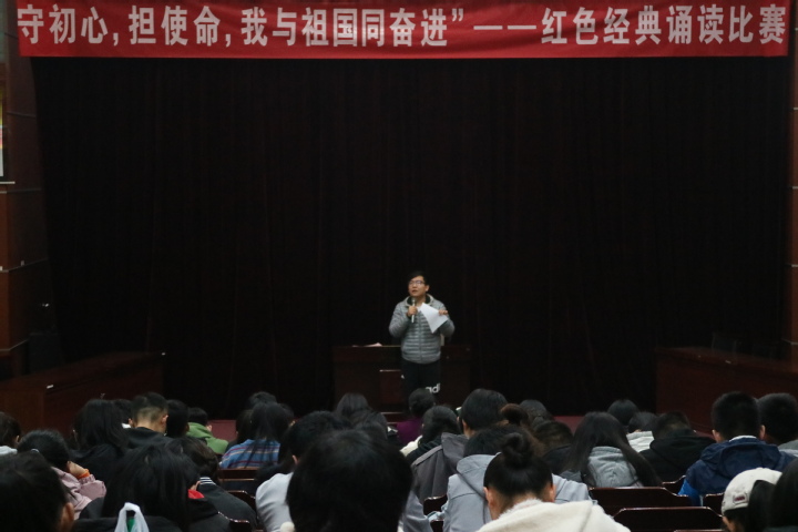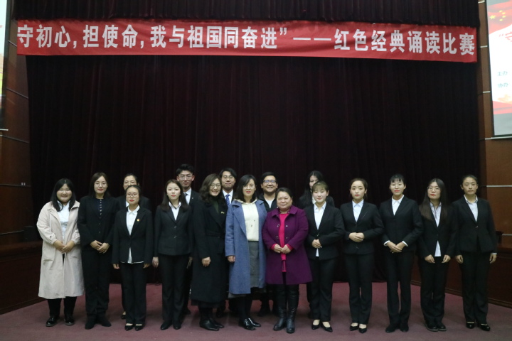 诵读红色经典,传承红色精神。11月23日晚,由习近平新时代中国特色社会主义思想学习研究会主办、法律学会协办的“守初心,担使命,我与祖国同奋进”红色经典诵读比赛决赛在伟德victor1946网站西校区模拟法庭举行。本次活动由解浩、殷丽环主持,伟德victor1946网站行政管理系教授张术环、伟德victor1946网站辅导员国睿、孟晶晶、魏晨晨担任评委。