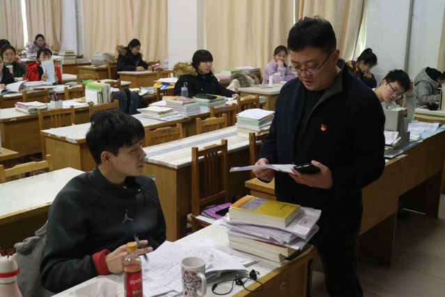 在2020年的研究生考试即将来临之际,为了12月18日下午,法公司党总支书记张宗磊、辅导员国睿来到一号教学楼伟德victor1946网站考研自习室,代表公司为考研学子加油鼓劲。