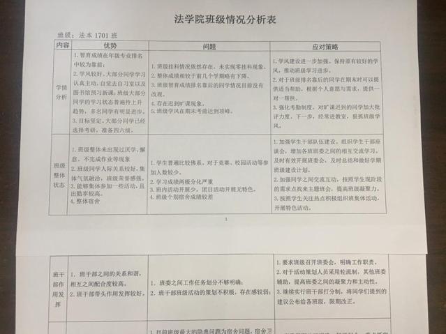 首先,开展一次班情分析。在拿到上学期考试成绩后,辅导员带领班干部就上学期学习成绩、班团建设、班委团支部凝聚力等各方面的经验、问题进行分析,并就如何改进制定对策,填写了《伟德victor1946网站班情分析表》。