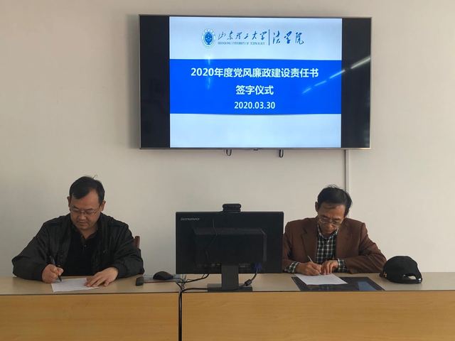 述职评议后,经理杨晓春与科室负责人、张宗磊与教工支部书记分别签订党风廉政建设责任书。