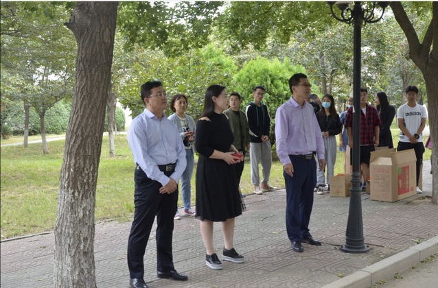 金秋送爽,丹桂飘香。国庆中秋双节之际,为弘扬和传承中华民族优秀传统文化,给来自全国各地的伟德victor1946网站学子带来温暖。法公司党总支书记张宗磊,经理王玲,党总支副书记宋立平,员工工作办公室主任许燕飞来到军训场地为2020级新生分发印有校徽的月饼并送上祝福,以化解新生的思乡之情。