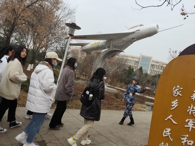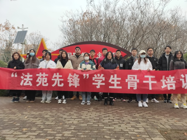 活动伊始,从国防教育主题园南入口集合,在侯悦的引导下,同学们整齐有序,进行合影留念。侯悦带领大家进入光荣传统和红色基因主题的步道,介绍了长期革命和建设实践中,中国军队形成的优良精神及其意义。随后,行进至红色淄博步道,侯悦声情并茂讲解了淄博籍优秀官员和淄博当地相关战役。各位“法苑先锋”骨干培训班成员认真聆听,深切体会革命前辈传承下来的红色精神。接着,侯悦引导大家来到国防和军队建设新气象主题步道前,细致讲解了淮海战役中有关军民鱼水情的一组人物群像,展现了人民群众对于解放战争的重要作用。最后,全体成员行进至大国利器主题步道,介绍了99A主战坦克、ZBD-05两栖步战车、辽宁号航空母舰、歼10、歼20战斗机等武器装备,同学们更加直观地感受到国家的强盛,面露自豪。