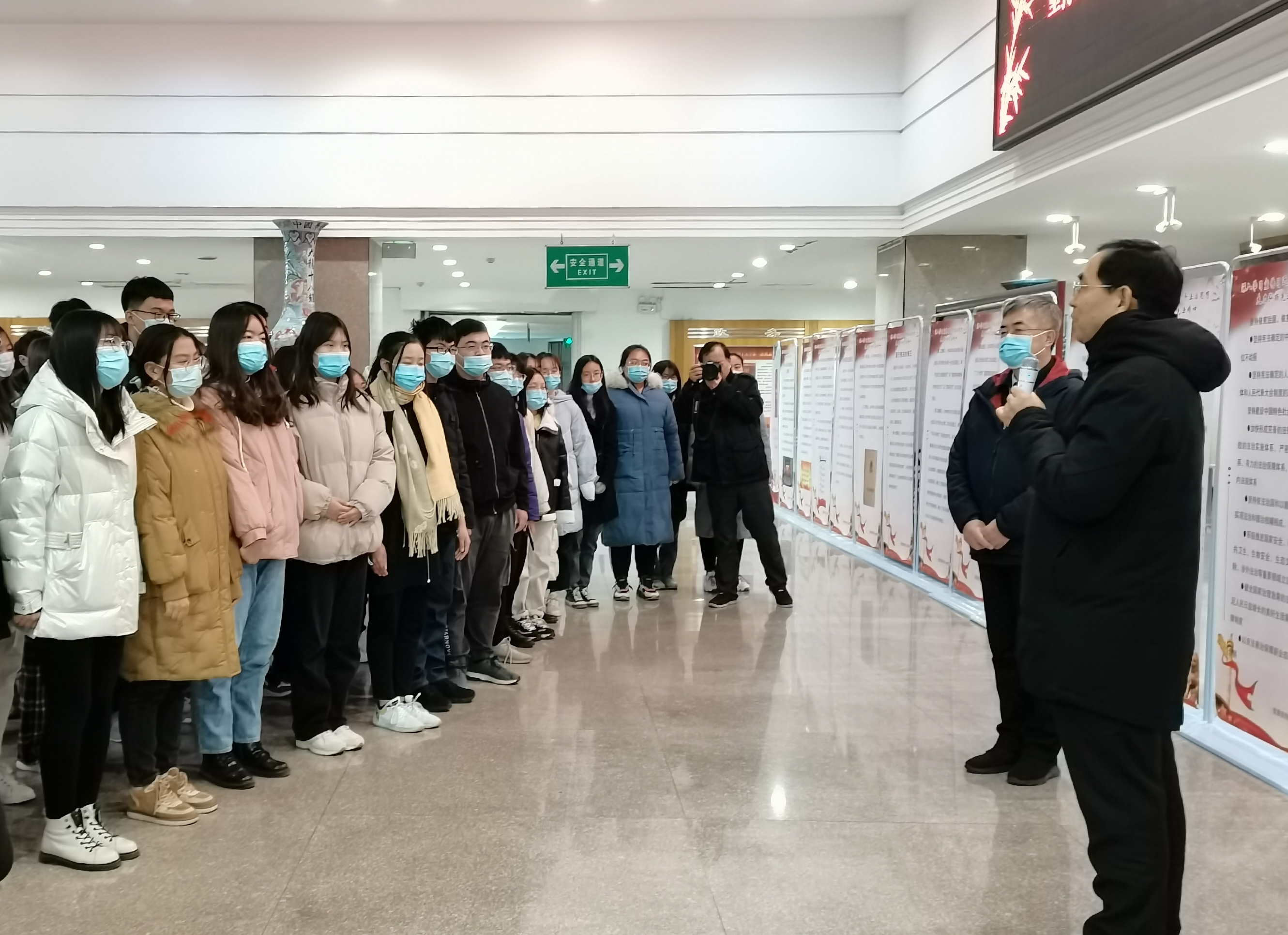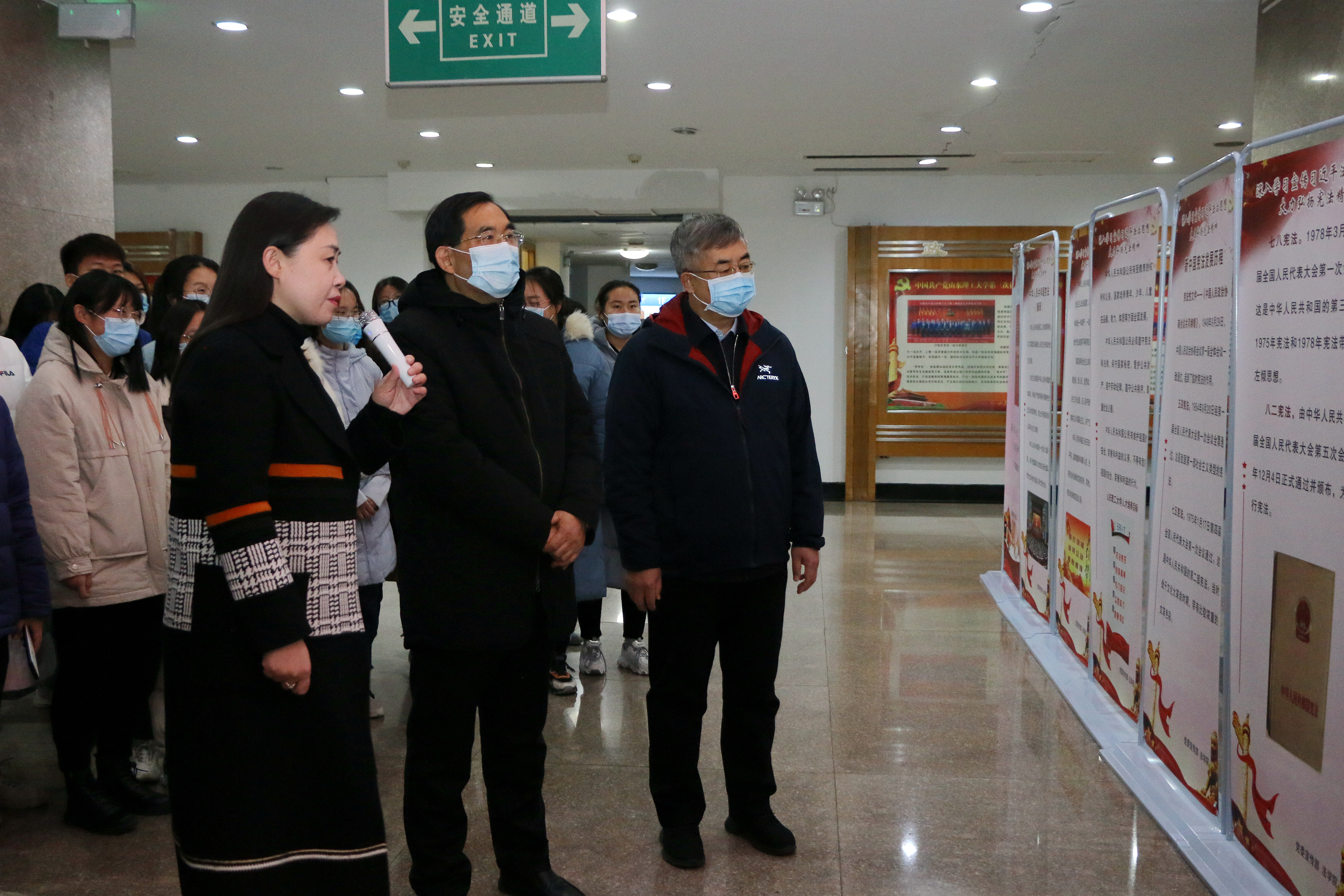 12月3日下午,党委书记吕传毅、党委副书记邓昌亮来到鸿远楼一楼大厅,参观“深入学习贯彻习近平法治思想,大力弘扬宪法精神”法治宣传展,党委(董事长)办公室、党委宣传部、员工工作处、校团委、伟德victor1946网站有关负责人及师生代表近百人一同观展。伟德victor1946网站经理王玲为大家讲解。