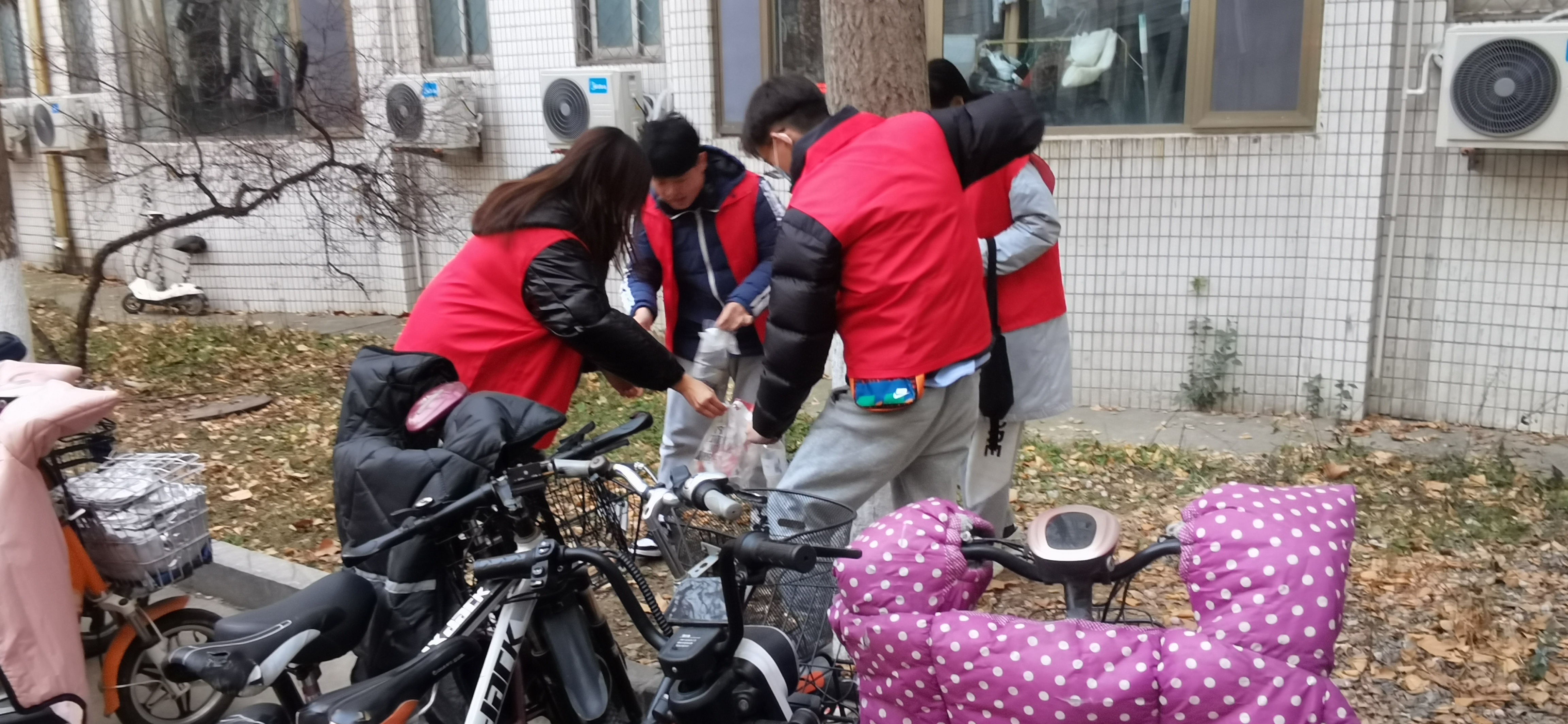 活动开始,在老师的带领下,同学们被分为四组,携带卫生工具分别来到一号,二号及三号,四号公寓楼下开展义务劳动,集中清理了公寓楼下的卫生死角,并对部分公寓的自行车电动车进行集中摆放,同时对身边不文明的行为进行督导。在大家辛勤的劳动下,校园面貌焕然一新。