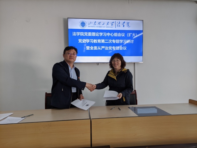 张宗磊代表公司同教工党支部书记代表安婧婧、办公室主任代表陈瑛签订《伟德victor1946网站2021年党风廉政建设责任书》。