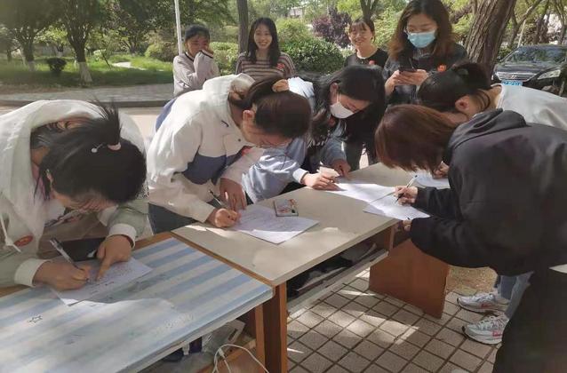 参赛队员们于下午2:00在模拟法庭前集合,进行抽签组队,工作人员为大家讲解比赛规则。经过一番热身运动后,各队伍陆续出发,前往指定的打卡地点,在团队协作、奔跑角逐中重温党史。打卡地点共有四处,包含模拟法庭、大红炉网红墙、一号公寓楼西南角、一号教学楼西南角。队员们过关斩将,在打卡地点完成党史知识问答任务后迅速进入下一接力环节。通过团队接力合作,参赛队员们追寻党史,重温革命征程,坚定初心使命。