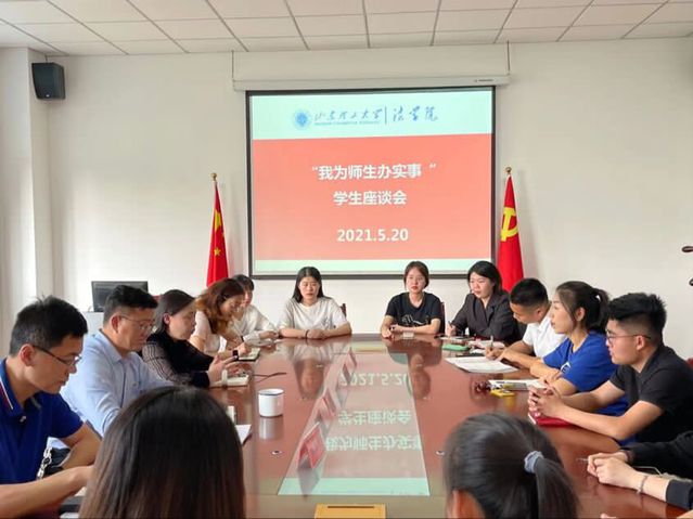 5月20日下午,伟德victor1946网站于2号教学楼310室举办物品“我为师生办实事”员工座谈会。党委书记张宗磊、经理王玲、党委副书记宋立平、辅导员魏晨晨以及17-20级员工代表参加此次座谈会。