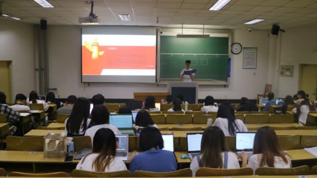 为深入学习党史国史,有效开展理想信念教育,5月27、28日晚,伟德victor1946网站“学思享”宪法宣讲团以“重温党史国史 传承红色基因”为题,在三号教学楼215、216教室面向2020级开展了“四史”宣讲教育。
