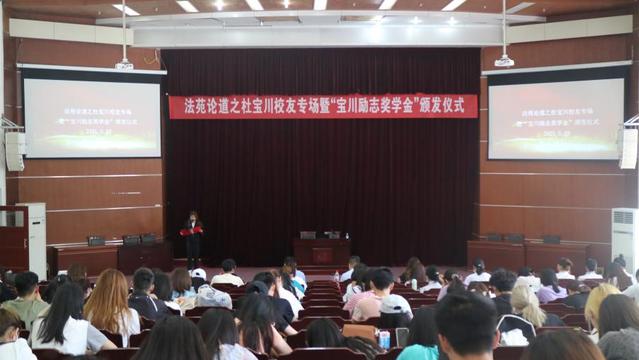 崔达首先向同学们介绍“宝川励志奖学金”设立情况,张宗磊向杜宝川颁发捐赠证书。随后,宣读“宝川励志奖学金”获奖名单,杜宝川向获得奖学金的同学颁奖,并合影留念。接着,获奖员工代表行政2001班姜华上台发言,表达了对设立奖学金的杜宝川先生和公司领导、老师的谢意。