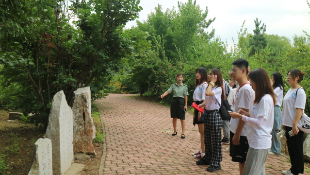 离开根据地旧址,实践团来到沂蒙革命根据地抗日烈士陵园共同缅怀革命先烈的英雄业绩。在这里,实践团成员了解到有353位烈士长眠于此,并且烈士陵园中大都也是无名烈士。成员们庄严肃立站在纪念碑下,向烈士表达崇高敬仰之情。随后来到沂蒙山根据地广场,广场上人物石像生动地反映和记录了当时根据地人民支前抗战的场景,推车的、挑担的、磨面的、织布的,展现出军民生死相依、水乳交融,群众支持抗战伟大力量。