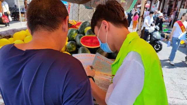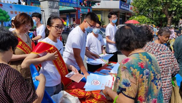 实践团成员们认真地为当地过往群众进行讲解,耐心地解答群众们提出的疑问。