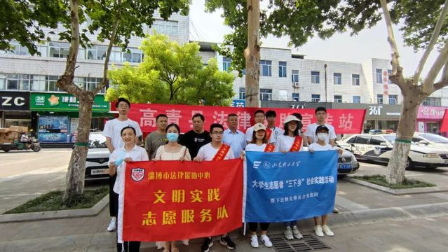 7月20日上午,伟德victor1946网站“稷下法制先锋”社会实践团队到达高青县,在法律援助中心主任冯志新的带领下开展法律援助宣传,共计10余名志愿者参加本次活动。